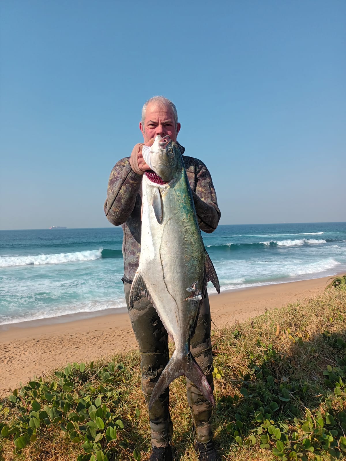 I had made the educated guess by the end of this experience that she was a female. What really concerned me was that she had probably been swimming around me sizing me up in the dirty water already and then she followed me down and it was only now that I had seen her! We don’t see them too often in KZN South Africa but they are the number one predator that you do not generally want to see whilst spearfishing! Especially in less-than-ideal conditions where you can’t keep an eye on their movements one hundred percent of the time.